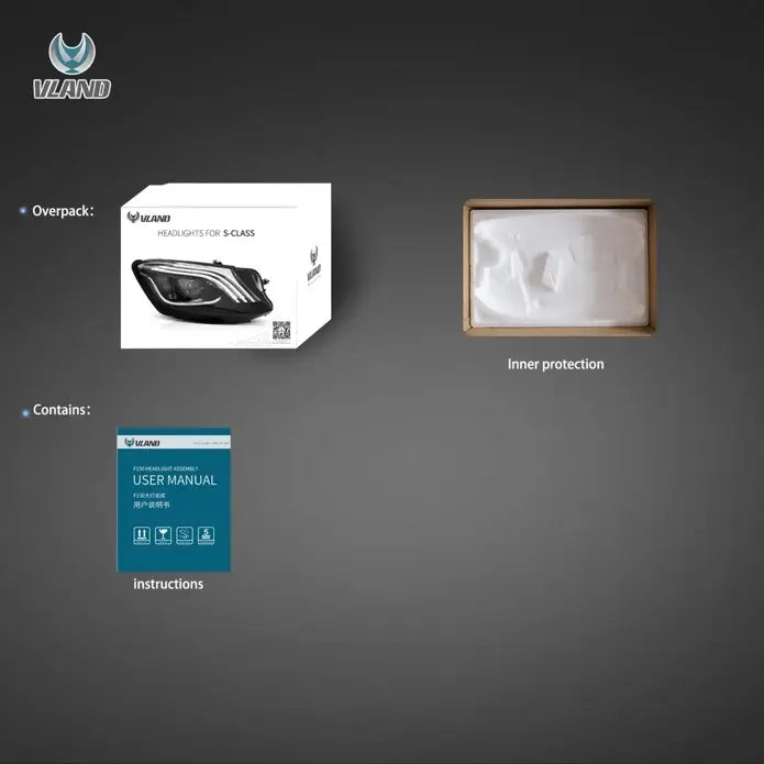 Does your 2014-2017 Mercedes-Benz S-Class W222 deserve lighting that matches its luxury pedigree? Factory headlights often fail to capture your sedan's sophisticated character with dated illumination and lackluster design. VLAND's precision-engineered LED headlights deliver a complete transformation, featuring signature blue DRL technology and premium construction that enhances both safety and style through seamless OEM integration.