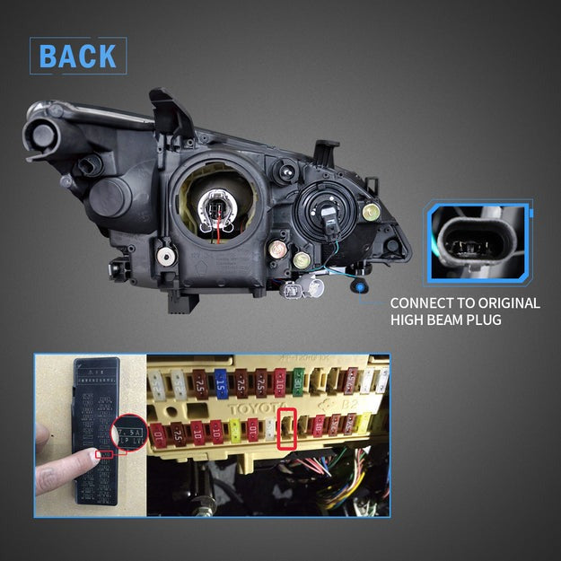 This item has the same connections and wires with the original headlamps. It is easy to installing (Professional installation recommended).