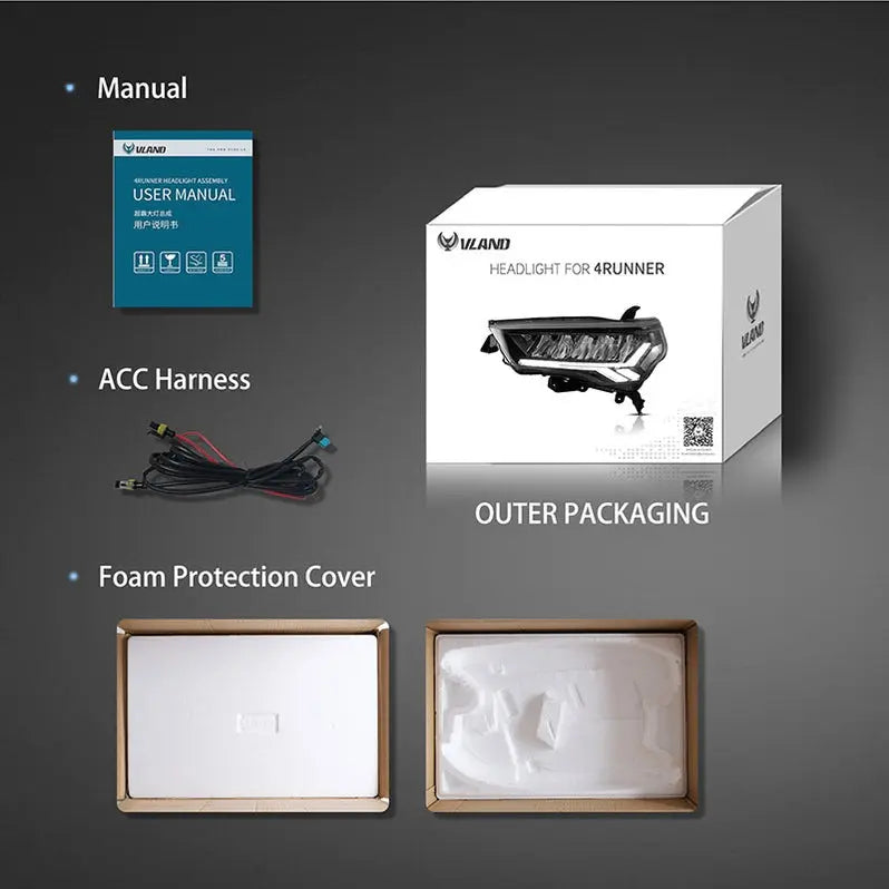 Does your 2014-2024 Toyota 4Runner struggle with inadequate lighting that compromises your off-road adventures? Factory headlights often leave you with limited nighttime visibility and a dated appearance that undermines your SUV's rugged capability. VLAND's precision-engineered LED headlights deliver a complete transformation, featuring dynamic DRL technology and advanced projection systems that unlock your 4Runner's true potential through seamless OEM integration.