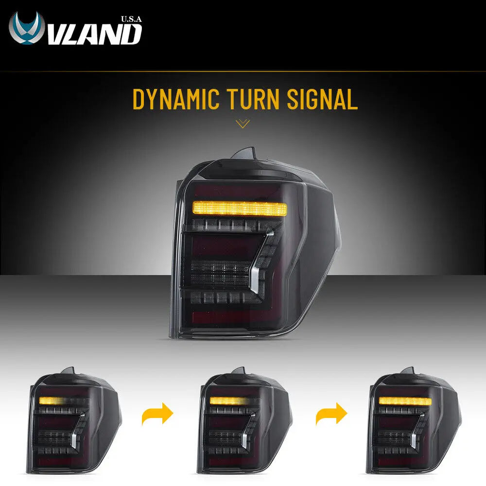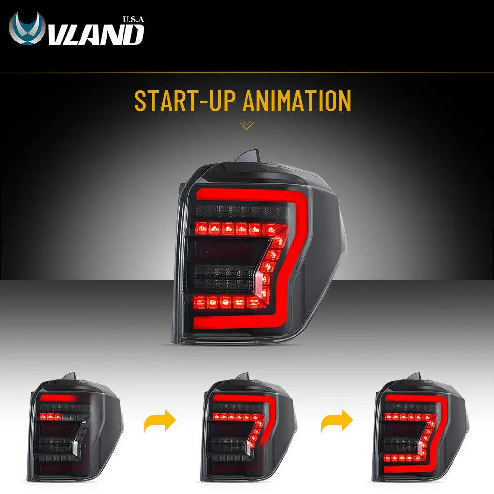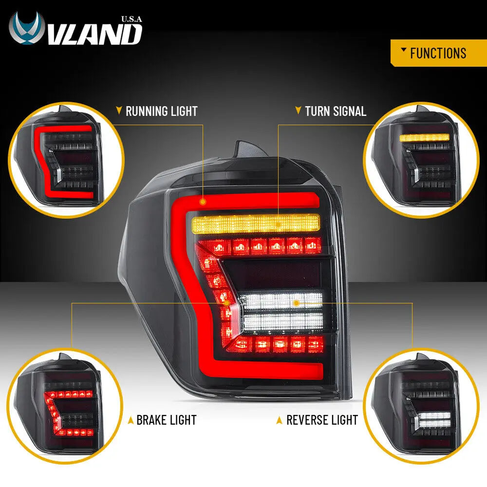 Your 2010-2024 Toyota 4Runner was born to be the epitome of rugged off-road capability. Yet, does the stock taillight design fail to fully showcase this rugged character after dark? Traditional lighting effects and conservative styling simply cannot match the powerful presence of this off-road powerhouse. VLAND's all-LED tail light assembly, engineered specifically for the 4Runner, seamlessly blends innovative optical technology with rugged aesthetics, infusing your vehicle with a fresh visual vitality.