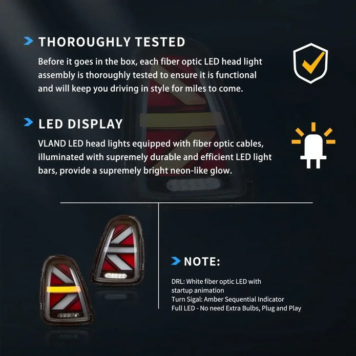Does your 2007-2013 BMW MINI Cooper R56/R57/R58/R59 deserve tail lights that match its iconic personality? Factory lighting often fails to capture your MINI's unique character with dated illumination and lackluster design. VLAND's precision-engineered LED tail lights deliver a complete transformation, featuring dynamic startup animation and premium construction that enhances both safety and style through seamless OEM integration.