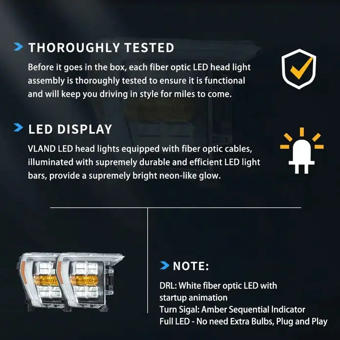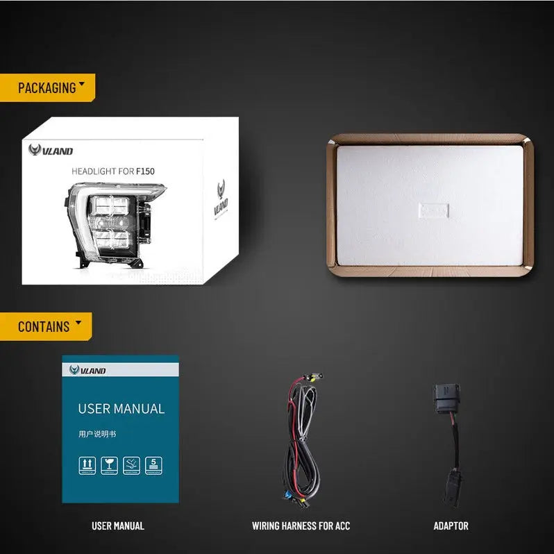 Does your 2021-2023 Ford F150 with factory reflector headlights leave you struggling with inadequate illumination and lackluster road presence? Standard reflector housing often fails to maximize your truck's potential, compromising both nighttime safety and modern aesthetics. VLAND's precision-engineered LED headlights deliver an advanced lighting solution featuring dual-beam reflector technology and signature amber markers, transforming your truck's performance and presence through seamless OEM integration.