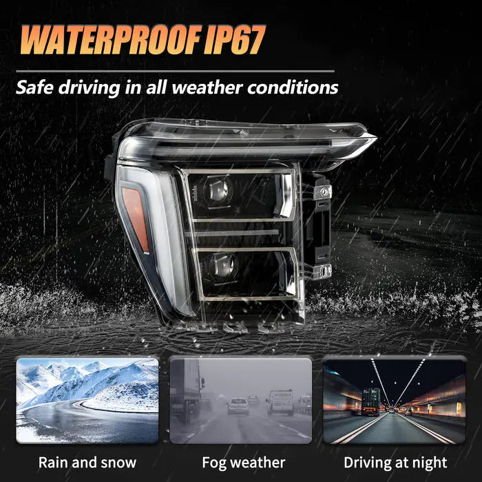 Your 2021-2023 Ford F-150 embodies power and presence, but do the factory headlights diminish its commanding aura? Whether it's the base halogen lights or the conservatively designed factory LEDs, neither matches your vehicle's exceptional status. VLAND deeply understands your pursuit of driving safety and factory-level reliability. We proudly introduce this professional-grade LED projector headlight assembly—an upgrade that transcends mere aesthetics, delivering a comprehensive leap in illumination performance and safety.
