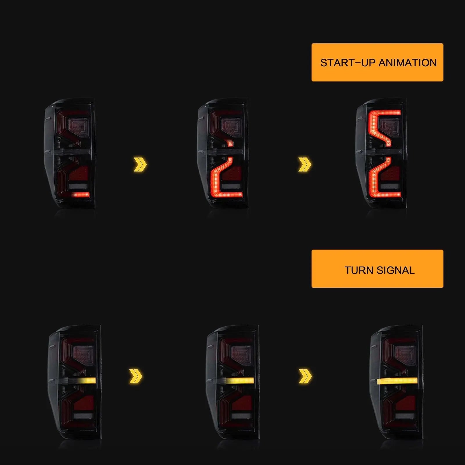 Your 2012-2021 Ford Ranger T6 was born rugged and reliable. But does the stock taillight design dim that tough-guy aura in the night? Dim halogen lights and generic styling not only lower the vehicle's aesthetic appeal but also pose safety hazards during nighttime driving. VLAND's custom-engineered LED taillights for the Ranger T6 are designed to shatter mediocrity! We understand your relentless pursuit of practicality and reliability. These taillights, blending cutting-edge LED technology with precise fitment, will fully awaken your vehicle's visual soul—it's not just an illumination upgrade, but a dual leap forward for your pickup in both functionality and aesthetics!
