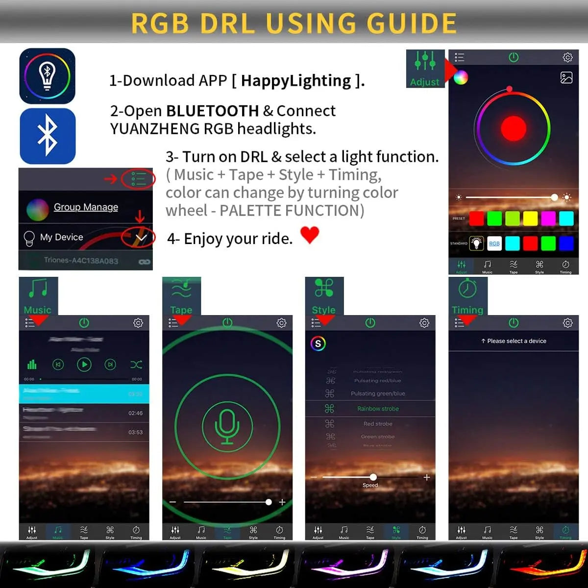 Style:Dual Beam RGB Headlights(Multicolor DRL).